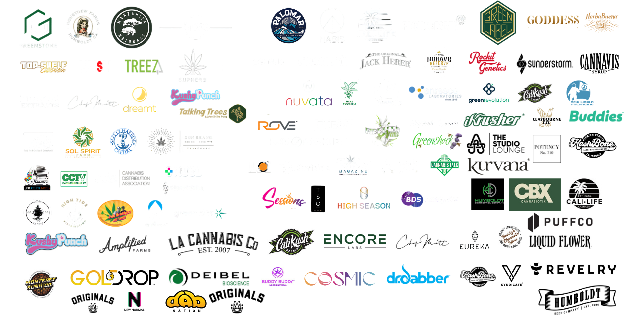 Back Pack Boyz, Buddies, Honey King, Cali Banger, From the Earth, Harvest, Side Hustle, Moonland, Bogaga Broz, Jefa, Legion of Dank, Plug Play, Side Hustle, Whow, Autumn Brands, Ms Snoops, Packwolves, e10 Labs, Leaf, Tylers Treats, Sipkoi, Ashloud, its All About Choices, Juiced
